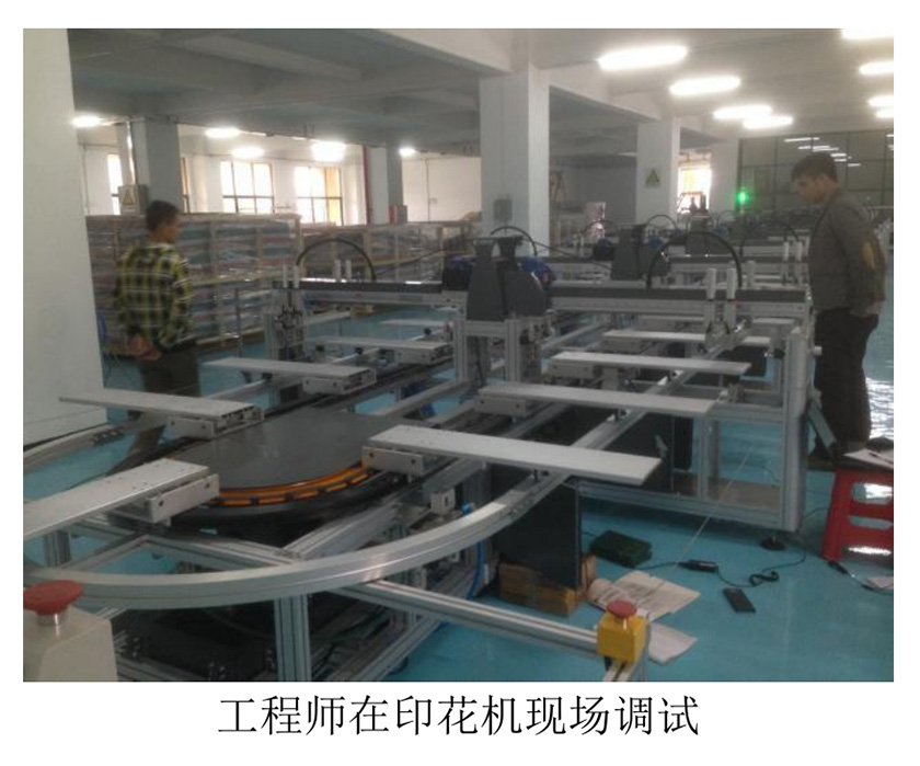 印花機(jī)可分為 8 色,12 色,24 色等等,顏色越多工位就越多,需要的電機(jī)和變頻器就越多,但應(yīng)用起來也主要是分兩種應(yīng)用,一個(gè)是主臺板的,一個(gè)是每個(gè)工位上的刷頭的,下面就逐一介紹一下。
