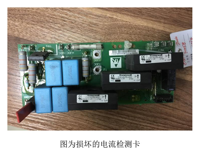 案例一:客戶反映有一臺 VLT6000 75KW 的變頻器出現(xiàn)報(bào)警并跳閘,報(bào)警不能復(fù)位,變頻器不能運(yùn)行。我們到現(xiàn)場首先檢查主電路是否正常,確認(rèn)正常無誤后再上電,然后查看變頻器報(bào)警記錄,發(fā)現(xiàn)有AL14報(bào)警,屬于接地故障報(bào)警。出現(xiàn)接地故障報(bào)警一般有兩個可能,要不就是電機(jī)或者變頻器真的出現(xiàn)接地系統(tǒng)故障,要不就是變頻器電流檢測電路故障導(dǎo)致的。于是我們首先排查外部原因,查看變頻器和電機(jī)的接地線是否連接正常,用搖表給電機(jī)和變頻器打絕緣查看是否達(dá)到絕緣要求,查看電機(jī)電纜線是否過長等等。經(jīng)仔細(xì)檢查,沒發(fā)現(xiàn)外部電路出現(xiàn)異常,那就基本可以確定是本身變頻器的電流檢測電路出現(xiàn)故障了。我們把變頻器的電流檢測卡更換后,AL14報(bào)警復(fù)位消除,變頻器恢復(fù)正常運(yùn)行。