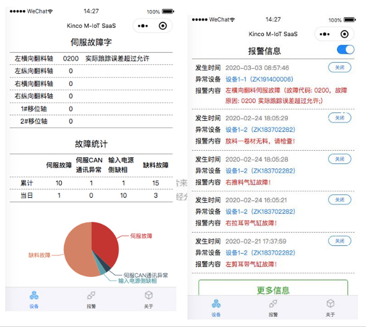 步科口罩機(jī)Plus方案,在CANopen總線伺服驅(qū)動(dòng)產(chǎn)品基礎(chǔ)上,迅速升級(jí)M-IoT物聯(lián)網(wǎng)遠(yuǎn)程運(yùn)維服務(wù),快速完善了設(shè)備報(bào)警和維護(hù)信息,增加了遠(yuǎn)程診斷服務(wù)功能,進(jìn)一步打通了現(xiàn)場、設(shè)備商和部件商的溝通渠道,幫助現(xiàn)場人員快速排查故障。