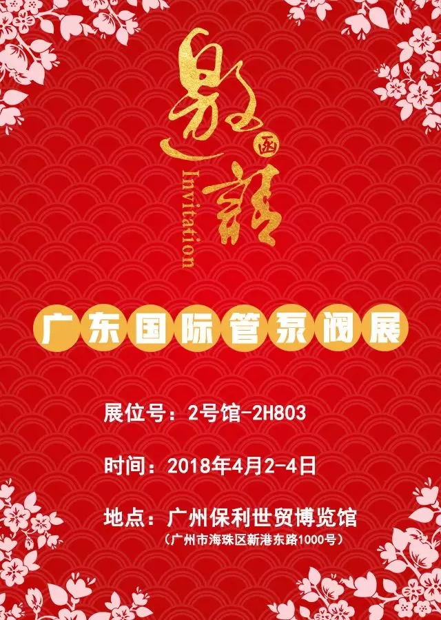2018廣東國際泵管閥展于4月2-4日在廣州保利世貿(mào)博覽館舉辦。50萬大數(shù)據(jù)資源平臺(tái),主辦方大力開發(fā)華南地區(qū)終端市場(chǎng)、外貿(mào)及海外經(jīng)銷商,為你帶來華南首屈一指的專業(yè)展會(huì)。