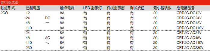 ● 觸點(diǎn)電流為8A (2CO)