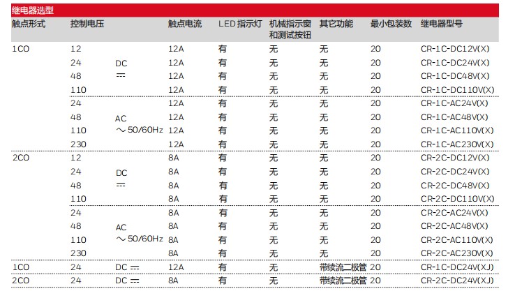 CR...(X)繼電器除了在保留CR繼電器體積小、容量大的特點以外,還進一步擴充了一組觸點型號的產(chǎn)品(包括配套使用的底座和附件),使產(chǎn)品線更加豐富和全面。