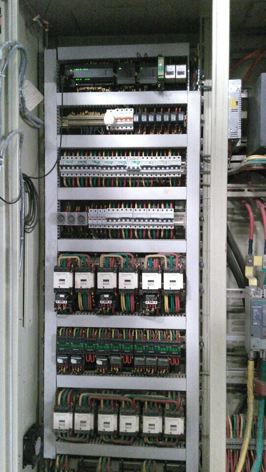 該系統(tǒng)設(shè)計(jì)之初,均沒有考慮冷卻泵、冷凍泵、循環(huán)泵采用變頻控制(如下表1),而是采用傳統(tǒng)的星三角啟動方式(舊電柜見下圖1),根據(jù)對系統(tǒng)運(yùn)行工藝的觀察,泵總功率110.5KW,電能浪費(fèi)嚴(yán)重,存在較大的節(jié)能空間。