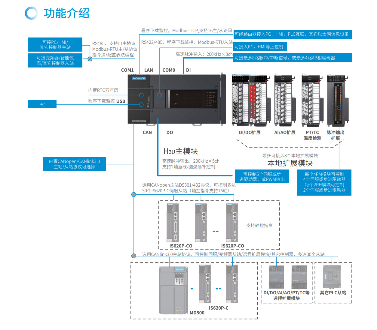 H3U系列PLC是匯川技術(shù)開發(fā)的第三代高性能小型PLC,采用新一代獨(dú)具匠心的PLC 架構(gòu)技術(shù),在增加更多豐富功能的情況下持續(xù)提升性能。配合完整且嚴(yán)格的軟件測試過程,使得PLC 穩(wěn)定可靠,值得信賴。